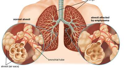 Respiratory diseases, or lung diseases,[1] are pathological conditions affecting the organs and tissues that make gas exchange difficult in air-breathing animals. They include conditions of the respiratory tract including the trachea, bronchi, bronchioles, alveoli, pleurae, pleural cavity, the nerves and muscles of respiration. Respiratory diseases range from mild and self-limiting, such as the common cold, influenza, and pharyngitis to life-threatening diseases such as bacterial pneumonia, pulmonary embolism, tuberculosis, acute asthma, lung cancer,[2] and severe acute respiratory syndromes, such as COVID-19.[3] Respiratory diseases can be classified in many different ways, including by the organ or tissue involved, by the type and pattern of associated signs and symptoms, or by the cause of the disease.